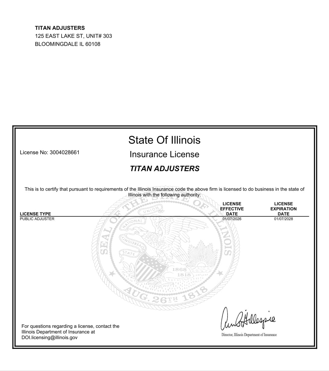 LEARN MOREWe help Illinois homeowners and business owners recover after storm, fire, or water damage. Our team of licensed public adjusters works directly with your insurance company to make sure you receive the maximum compensation you're entitled to. From inspection to final payment, we advocate for you every step of the way.